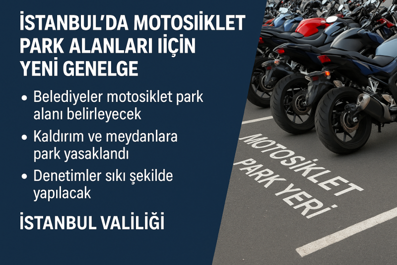 İstanbul Valiliği, motosikletlerin kaldırımlara ve meydanlara parkını yasaklayan, belediyelere park alanı belirleme zorunluluğu getiren genelge yayımladı.